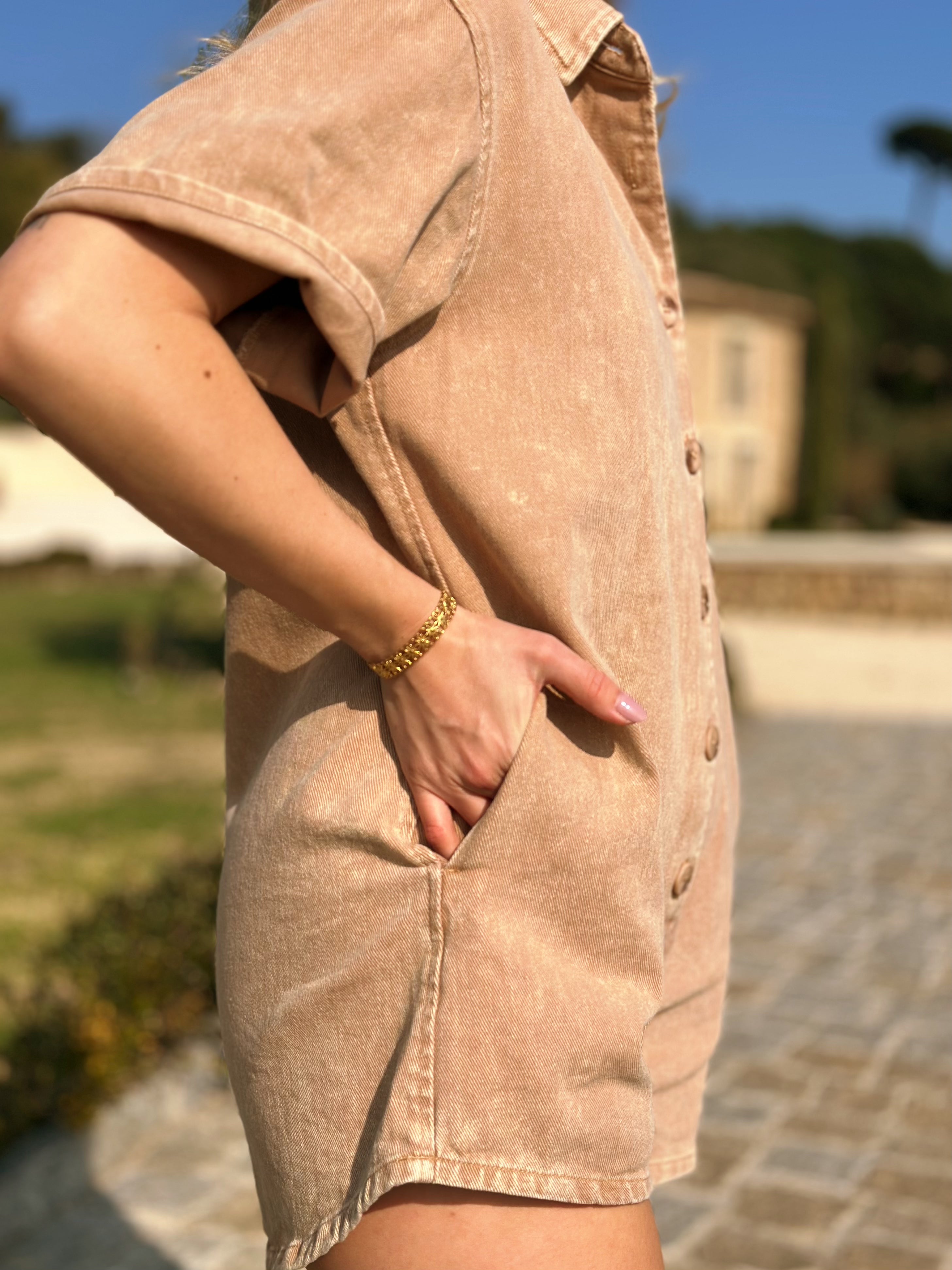 La combishort CHARLY est la pièce indispensable du printemps/été. Facile à porter, elle fait tout le look en une seule pièce avec sa coupe oversize décontractée et ses poches pratiques.